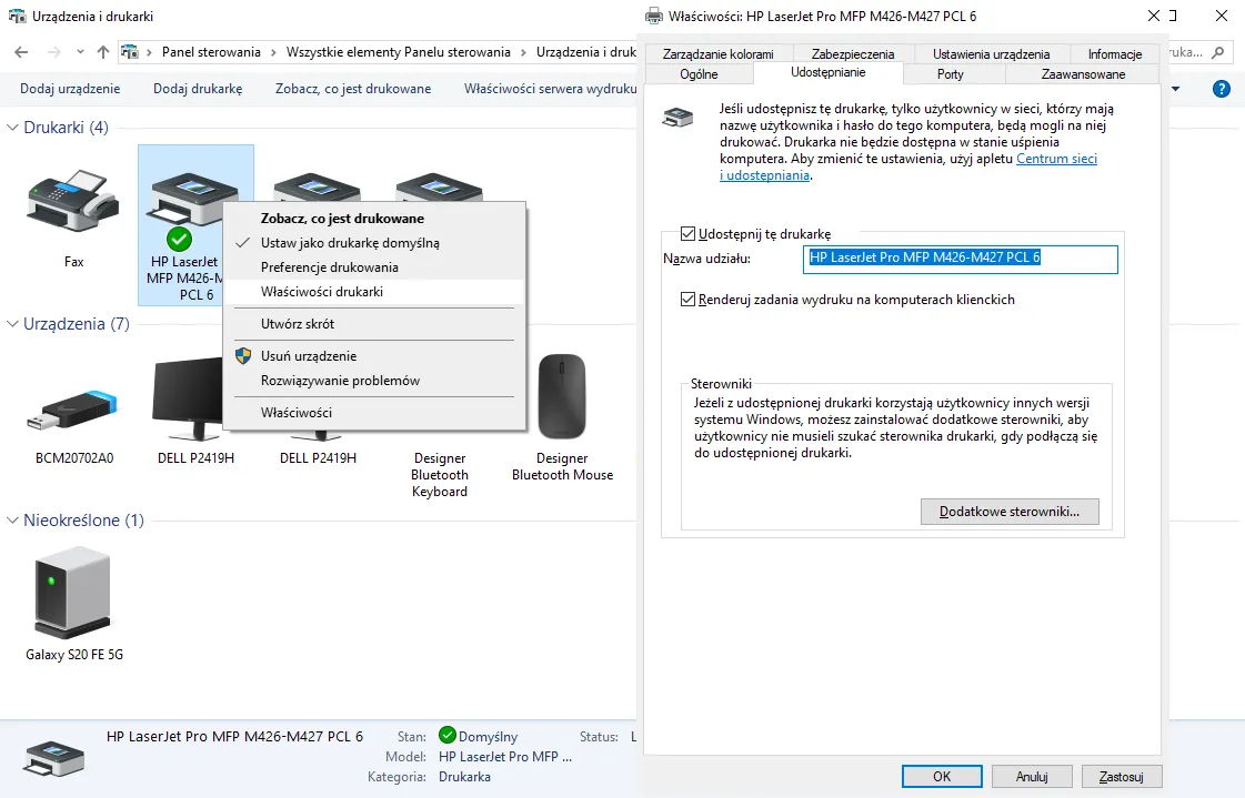 Jak zainstalować brakujące sterowniki dla drukarki w sieci
